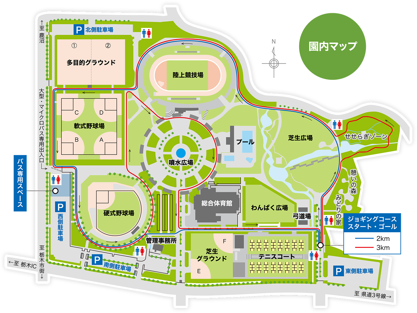 北側駐車場とそのトイレ、弓道場近くのトイレが使われる。