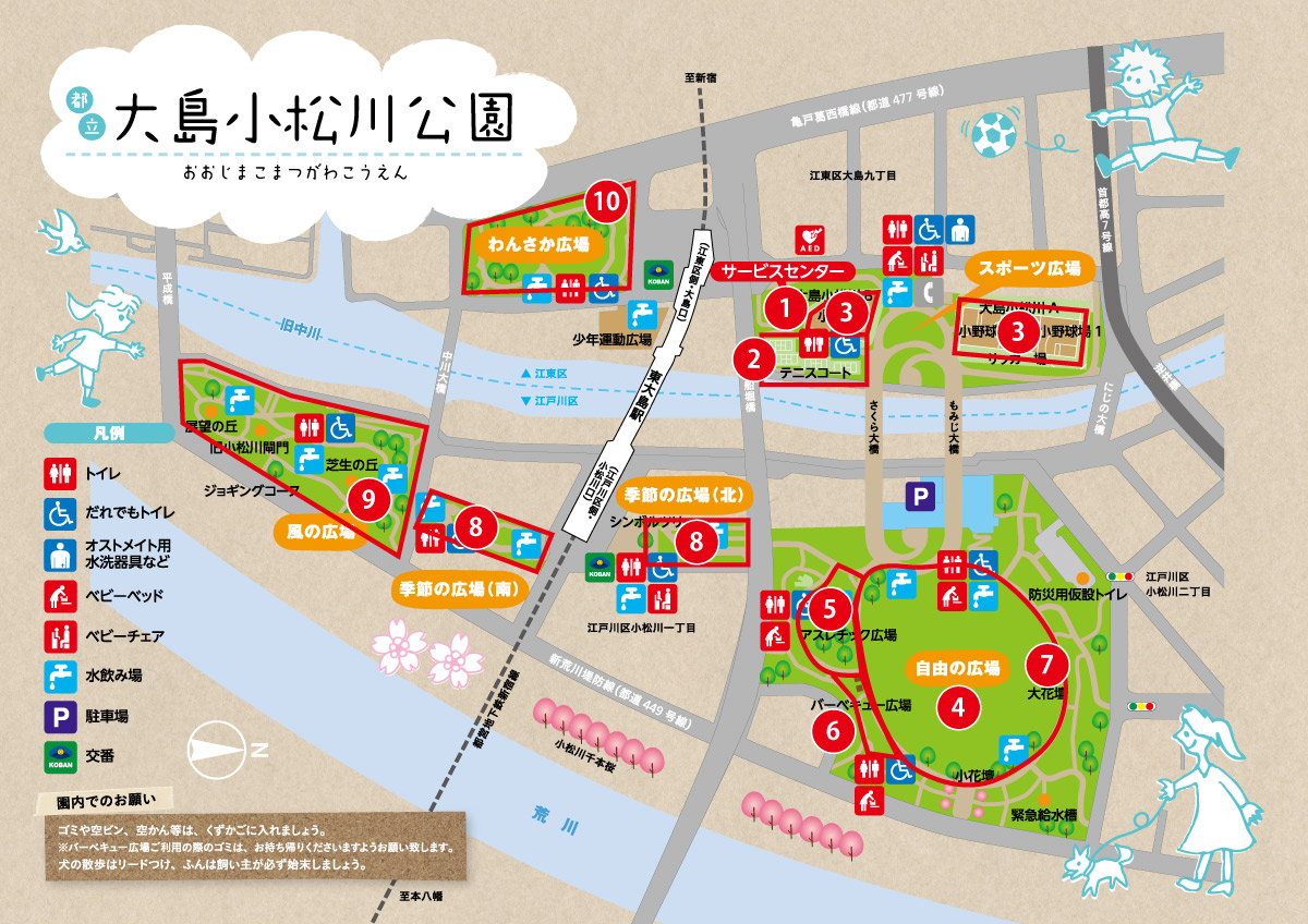 わんさか広場、季節の広場南のトイレが使われる。